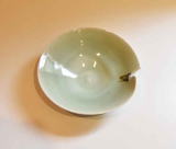 高い評価を得ています。 素材は磁器、釉薬には故郷熊野市で産出する那智黒石を砕いた粉末を調合しており、艶のある淡い緑を発しています。 造形はこれまでカットワークを得意としてきました。鋭いエッジや緩やかなカーブが優美な陰影を与える作品は多く