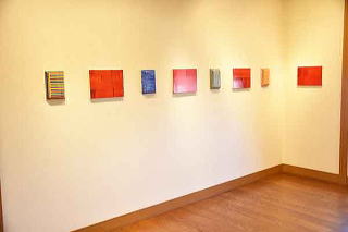 2021年はるひ美術館「MITOS展」46点の同じサイズ、形の小品の列を心地よさと驚きを感じながら観た。色の変化、線の強弱と配された文字らしきものが、森の散策や音の調べを感じさせた。
